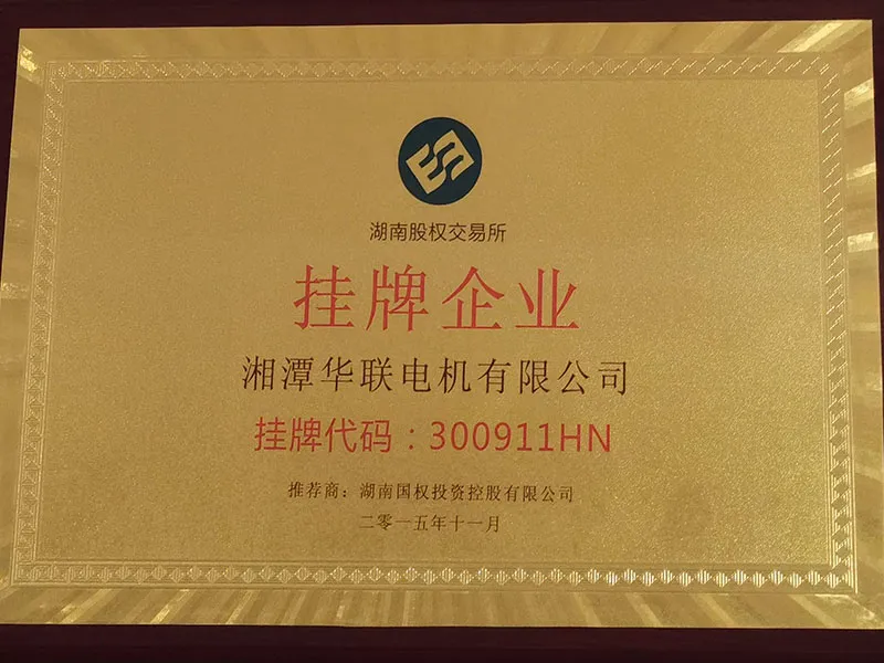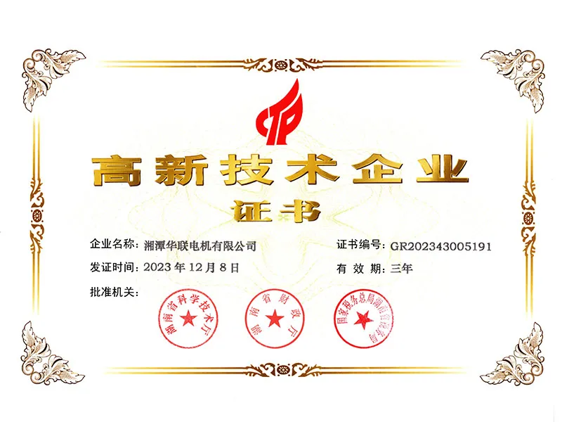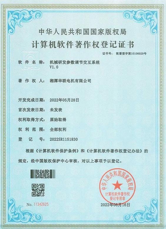 С момента основания ООО «Сянтань Хуалянь Электродвигатель» всегда придерживается концепции правды и практичности. Самостоятельно разработанные продукты - синхронные электродвигатели с постоянными магнитами - неоднократно удостаивались «Премии за инновационные применения военных и гражданских технологий», а также вошли в ряд «Национальных высокотехнологичных предприятий» со званием «Ключевой новый продукт». Компания также является членом Китайской ассоциации общей промышленности Машины,Принимал участие в разработке три отраслевых и групповых стандарта: «Технические спецификации оценки оборудования для энергосбережения при промышленной нейтральности углерода - электродвигатели», «Высокоскоростные трехфазные синхронные электродвигатели с постоянными магнитами на магнитной левитации для аэрационных вентиляторов», «Технические условия и методы испытаний низкооборотных синхронных электродвигателей с постоянными магнитами с высоким крутящим моментом».